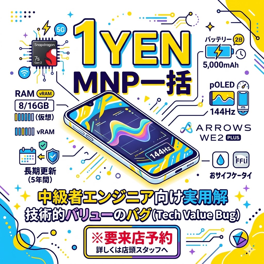 こんにちは。楽天モバイルの中間管理職です。 日々多くのお得情報に触れている私ですが、今回の「arrows We2 Plus」の価格設定を見たときは、正直「これ、設定ミスじゃないよね?」と本気で驚きました。 中級者以上のエンジニアやガジェット好きの皆さんに...