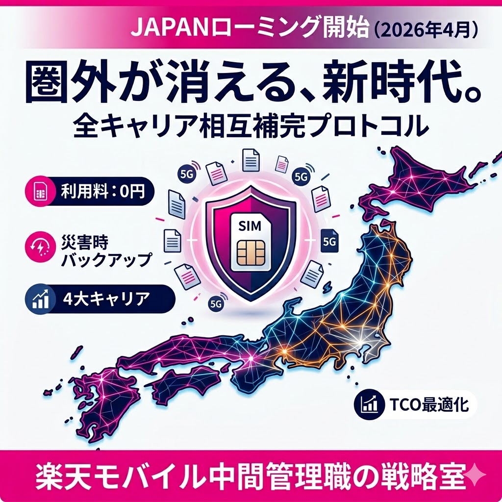 こんにちは、楽天モバイルの中間管理職です。 能登半島地震などの教訓を経て、日本の通信インフラは今、大きな転換点を迎えています。今回は、2026年4月から実装されるネットワークの「相互補完プロトコル」である「JAPANローミング™」について、マネジメ... -