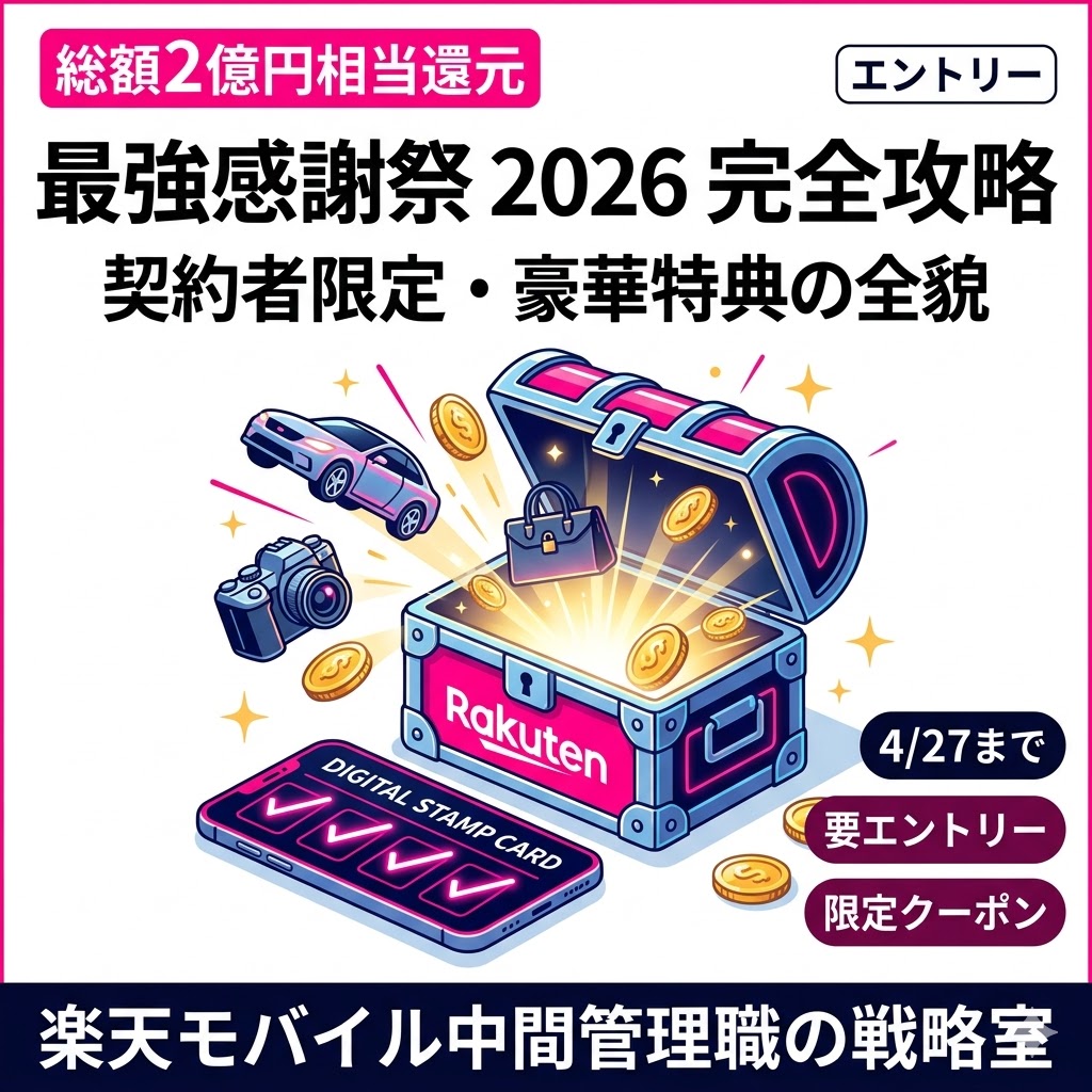 【2026年4月】楽天モバイル最強感謝祭|総額2億円相当の「契約者限定」還元を徹底解説